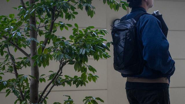 満員電車でも邪魔にならず、チェストストラップで固定すれば自転車やランニング移動も快適にできます。