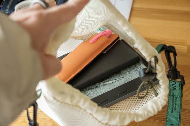 意外と“2本分のペンホルダーがあるバッグ”って少ないんですよね……。その点で、バッグ内がより整理されるし、バラバラにならないのも助かるポイントです。