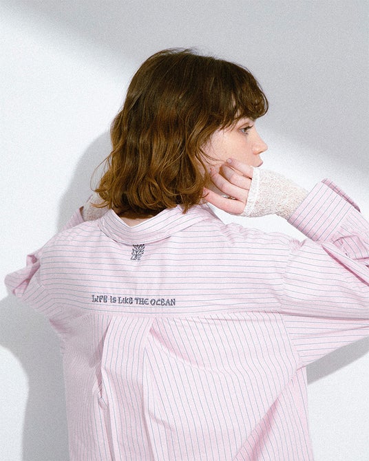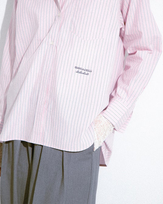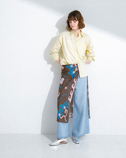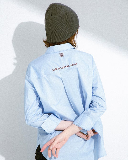 刺繍で施したプレイフルなイラストとロゴがスタイリングのアクセントになるエンブロイダリーシャツ。