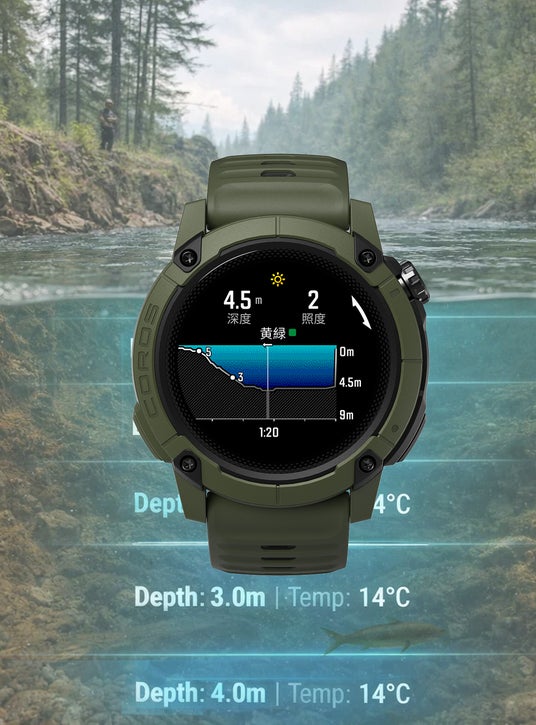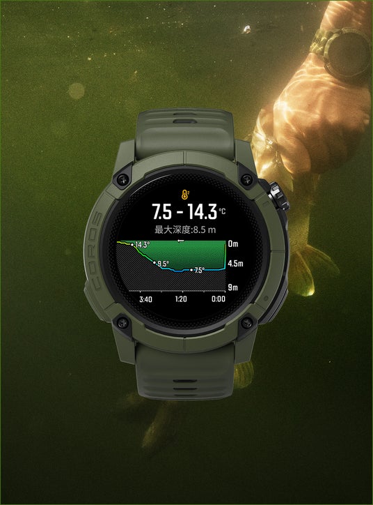 COROS HYDROPが記録した情報は、COROSウォッチとアプリに直接送信され、視覚的なチャートや図として表示されるため、釣行中でも確信を持って素早い判断が可能となります。