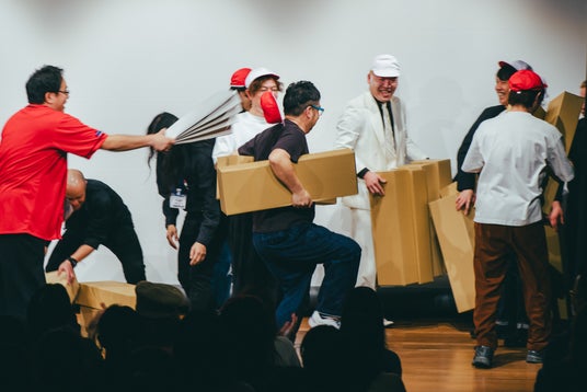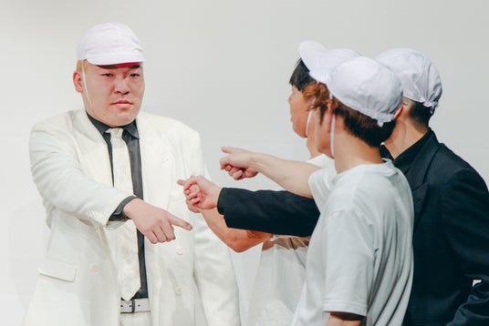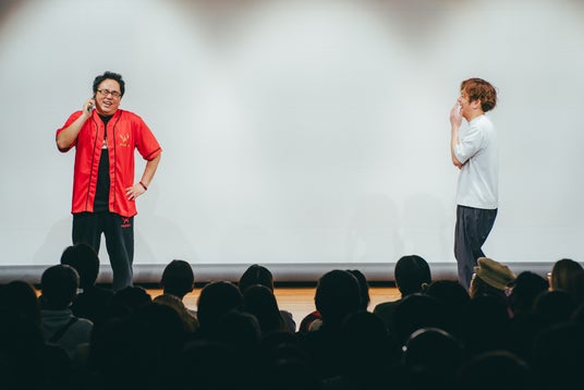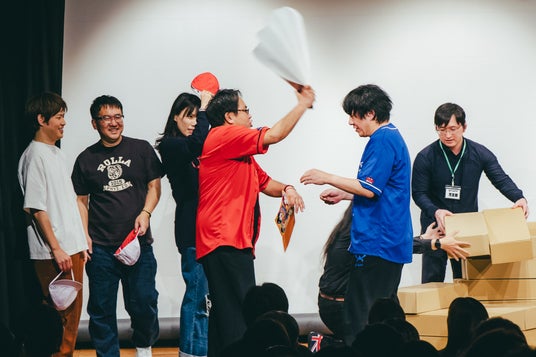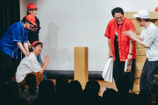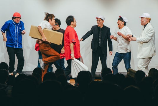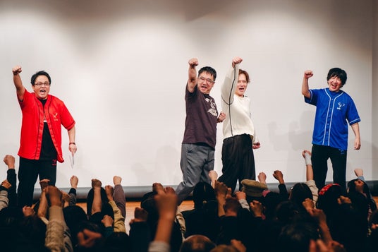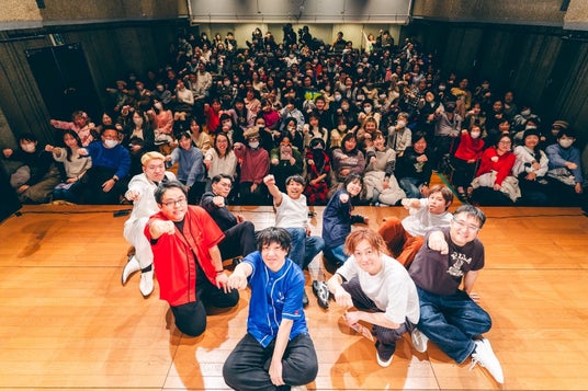 客席からの沢山の笑い声の中、企画コーナーも終了へ。来場者と記念撮影をして、大盛況のうちに初回公演は幕を閉じました。