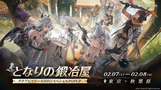 オンラインエンターテイメント企業のHong Kong Spiral Rising Technology Co., Limited(本社:香港、以下「Hong Kong Spiral Rising」)は、同社傘下のゲームスタジオPan Studioが手がけるアクションRPG『デュエットナイトアビス(Duet Night Abyss)』(PC / iOS / Android)について、2026年2月7日(土)から2月8日(日)にかけて、リリース100日記念POP-UPイベント「となりの武器屋」をアキバ・スクエア(東京・秋葉原)にて開催することが決定いたしましたので詳細をお知らせいたします。