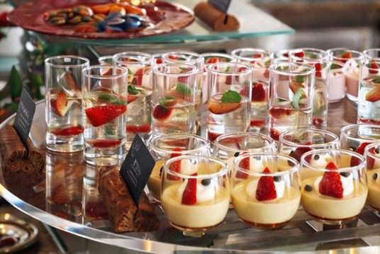 定番のショートケーキやミルフィーユなど、約20種の彩り豊かなスイーツのほか、イチゴのスムージーや数種類のトッピングで楽しむパフェ、目の前で仕上げるいちごのフランベデザートも登場。さらに、シェフ特製オードブルやスープ、パスタやサンドイッチ、サラダなどのお食事メニューもビュッフェスタイルで15種ご用意いたします。