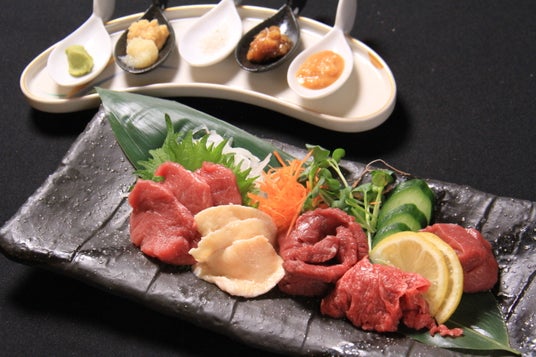 本企画では、赤身、霜降り、ユッケ、希少部位など、両店舗で通常提供しているすべての馬刺しメニューが対象となります。