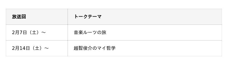 番組前半は、越智俊介さんとRyo’LEFTY’Miyataが、2人の音楽のルーツ、ビートルズからファンクへと傾倒していった音楽ヒストリーについて語っています。番組後半では、結成10周年を迎えた越智俊介さんのバンド「CRCK/LCKS」を深掘りし、音楽活動に対する「マイ哲学」にも迫ります。