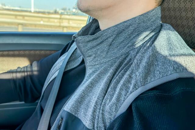 モコモコしたベストのように単体ですごくあたたかいわけではありませんが、寒いときのプラスアルファとしては充分な印象。