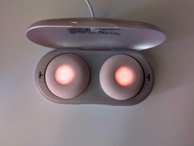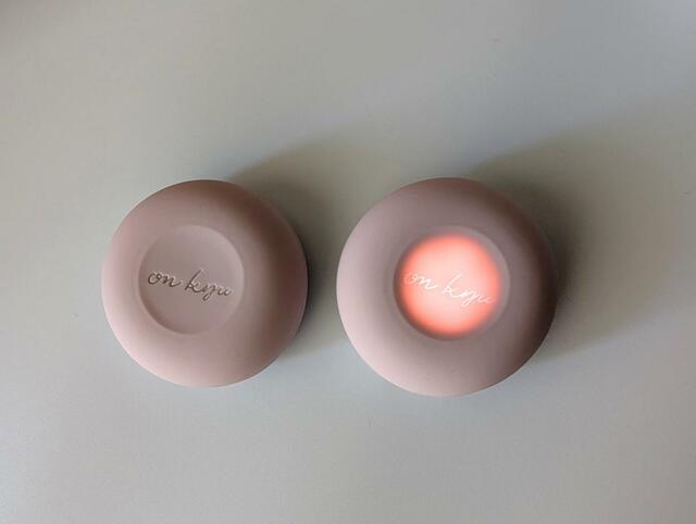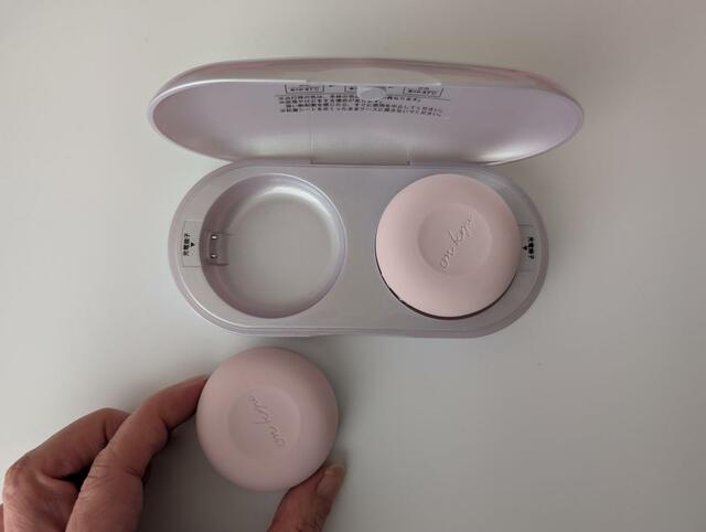 充電器を兼ねている専用のケースに直径約5cmのお灸が2個入っていて、デザインもかわいい!