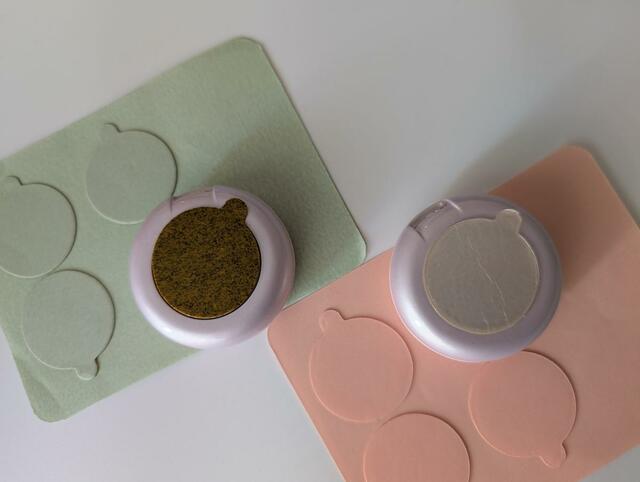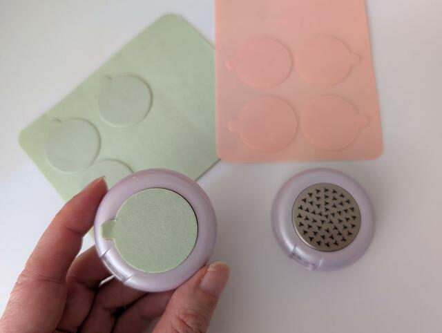 付属のシールは、ピンク(無香)18枚と、グリーン(よもぎ)12枚の2種類。別売りもされているので、ストックを気にせずに使えます。