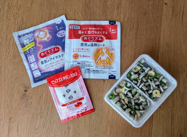 特に冬場は寒さでコリがひどくなりがち。お風呂に入浴剤を入れたり、ホットアイマスクやお灸などを取り入れたりと“温活”に取り組んでいます。