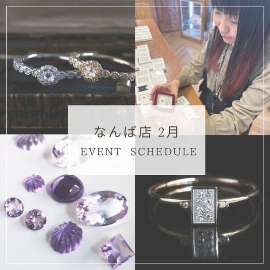 2月のPARCELLE JEWELRY なんば店では、新作ジュエリーのご紹介に加え、宝石そのものの魅力や、仕立ての背景に触れていただけるイベントを開催いたします。それぞれのイベントで内容が異なり、宝石の選び方や楽しみ方を、さまざまな角度からご体験いただける構成となっております。