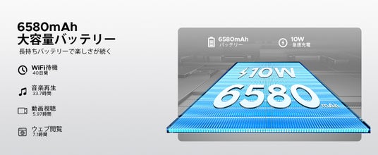 実質6000mAhの大容量バッテリーを搭載し、一度の充電で長時間の動画再生や作業をサポートします。さらに、ボディは軽量(約512g、厚さ9.7mm)で、ポータブルタブレットとして最適です。