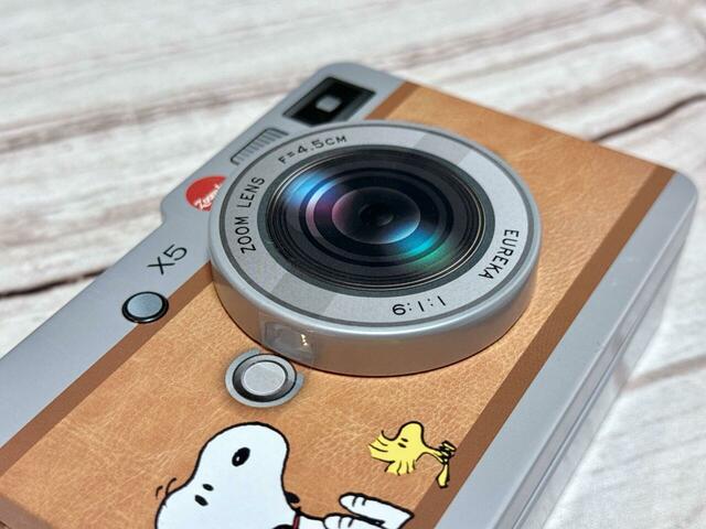 レトロ感のあるシルバー×ブラウンのカメラデザインだけでも十分おしゃれですが、そこにスヌーピーが加わることで、特別感のある仕上がりに。