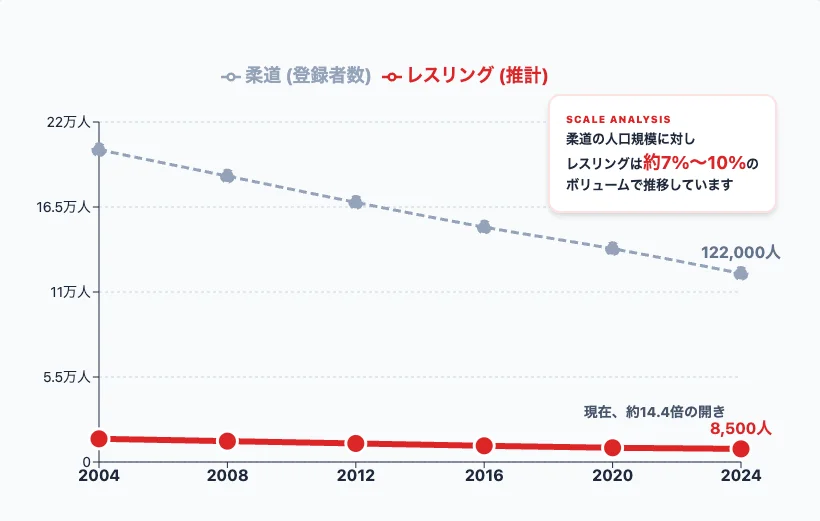 出典:全日本柔道連盟統計資料、全国高体連レスリング専門部データ等を基に作成