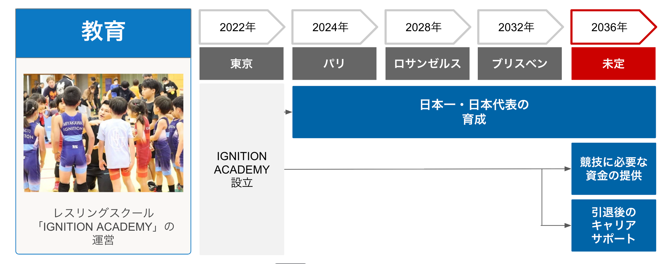 アカデミーの活動支援、選手の人格形成と競技力向上、日本のレスリング界の発展に寄与すること