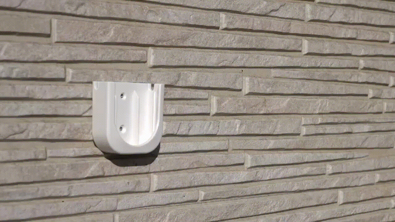 LMi本体を壁掛けするシーン。工事不要、穴開け・ビス止めも不要、トレーを貼ってカメラ本体を壁に掛けるだけ。