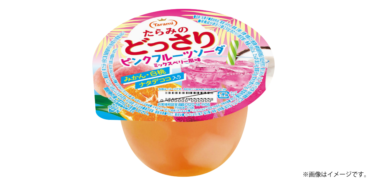 レトロ喫茶の世界観を、爽やかなピンクのソーダゼリーで楽しむ華やかなミックスベリー×ソーダの新感覚フルーツゼリーが登場。「たらみのどっさり ピンクフルーツソーダ」 新発売