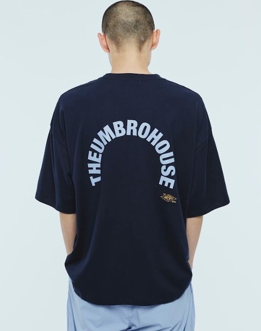 Big Tee 11,000円 ゆったりとしたビッグシルエットが魅力のコットンTシャツ。バックスタイルにはアーチ型にレイアウトされた“THE UMBRO HOUSE”のプリントを配置した存在感のあるデザイン。シンプルながらも一枚で主役になるアイテム。(color:White/Saxe/Dk Navy)