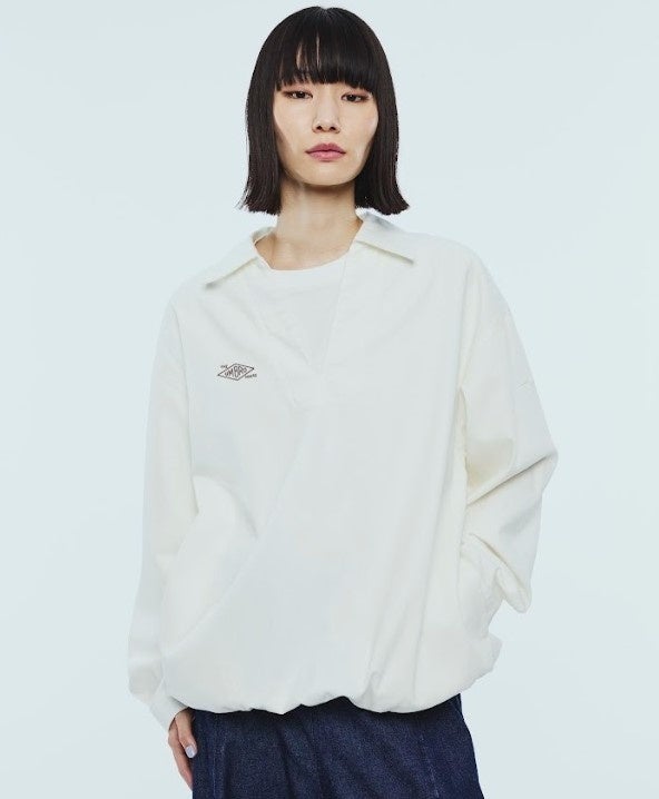 Denim Track Jacket 35,200円 90年代初頭の「UMBRO」を象徴する、トレーニングジャケットに見られた特徴的な“ダブルダイヤカッティング”を背面に施した一着。スポーティなディテールを踏襲しつつ、素材にはデニムを採用し、日常使いに適したデイリーウェアへと昇華させたアイテム。(color:Off White/Indigo)