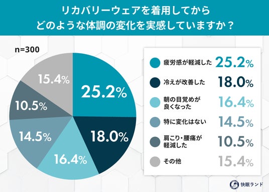 - 次いで「冷えが改善した」(18.0%)、「朝の目覚めが良くなった」(16.4%)