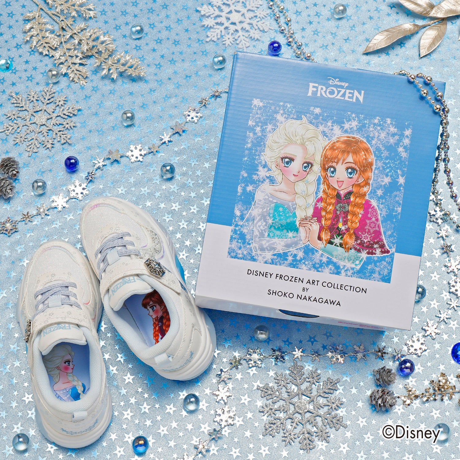 中川翔子さん描きおろしの『アナと雪の女王』のアートを使用し、『アナと雪の女王』の世界観を足元で表現した、特別仕様のキッズスニーカー。