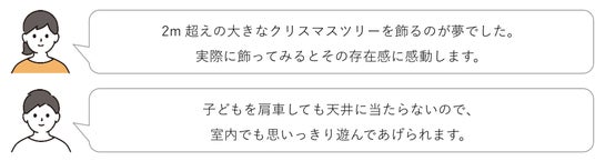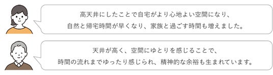 さらに自由回答からは、契約時には想像していなかった、高天井による「伸びやかな日常」や「趣味の広がり」を喜ぶ声が多数寄せられました。