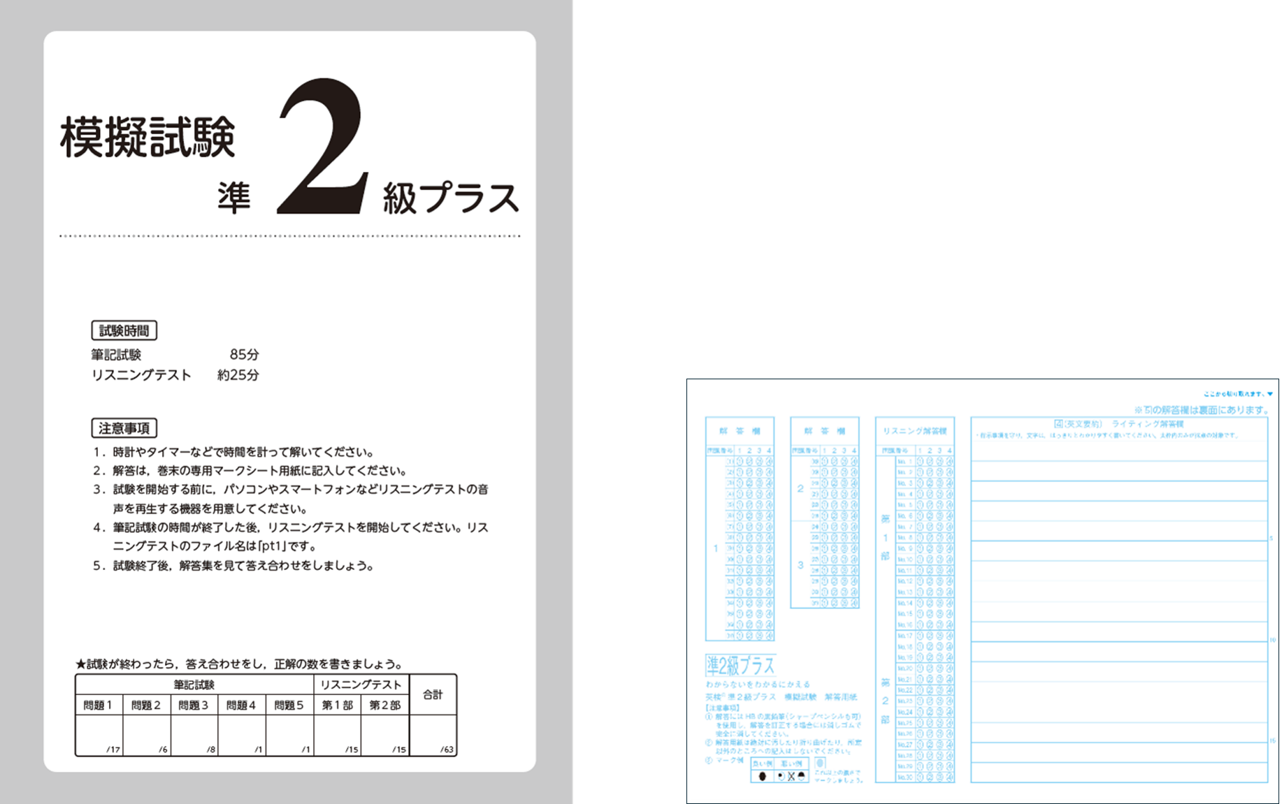 ・解答を記入する付属のマークシート付き、本番対策も万全
