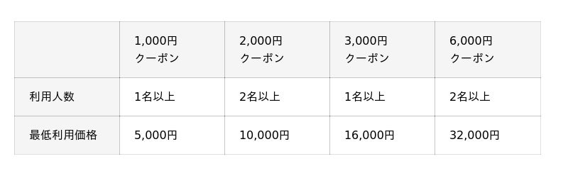 ※ 現在、じゃらん・楽天トラベルにおいて発行されている次のクーポンとの併用はできません。