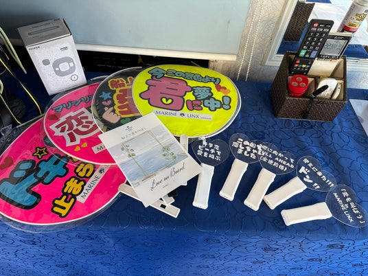 船内ではお二人を盛り上げるグッズ(推しうちわ)や、ウェディングベルを期間限定でご用意しております。(無料)