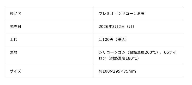 株式会社ヤクセル(本社:岐阜県関市、創業90年の刃物、日用品メーカー)は、日々の調理で感じやすいお玉の使いづらさに着目し、「注ぐ・残さず掬う・置ける」を一本に集約した多機能お玉『プレミオ・シリコーンお玉』を開発しました。2026年3月2日(月)より、全国の専門店および公式オンラインストア(https://www.yaxell.co.jp)にて販売開始いたします。また、2026年2月9日(月)より公式オンラインストアにて予約販売を開始いたします。