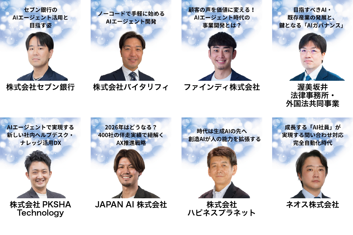 国内最大級のAIポータルメディア「AIsmiley」を運営する株式会社アイスマイリー(東京都渋谷区、 代表取締役:板羽晃司)は、2025年12月11日(木)・12日(金)の2日間にわたり開催した「AIエージェント博 by AI博覧会」のカンファレンスのアーカイブ配信を2月9日(月)より開始いたしました。「AIエージェント」分野の第一線で活躍する登壇者たちによる貴重なセッションの数々は、ビジネスパーソン必見の内容です。