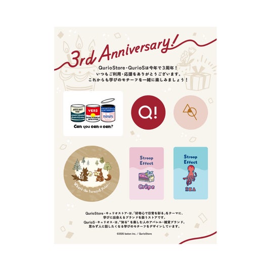 3周年を迎えたQurioStore・QurioSはこれからも、アイテムを通じてお客様と一緒に学びを楽しめるよう取り組んでまいります。
