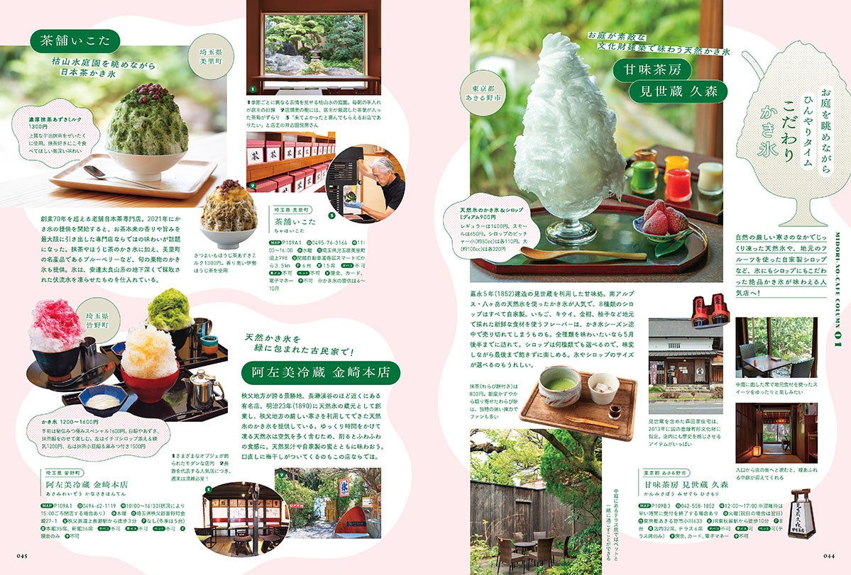 ほかにも、「森×グルメ」をテーマに、ハンバーグやピッツァ、カレーなど、おいしい名物メニューのある森カフェの紹介や、かわいい木工雑貨を扱うお店など、コラムページも充実。