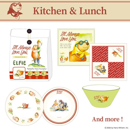 1988年に刊行されて以来、世代を渡って読み継がれているロングセラー絵本『ずーっと ずっと だいすきだよ』(作・絵:ハンス・ウィルヘルム 訳:久山 太市 出版社:評論社)。絵本に登場する“ぼくとエルフィー”が全35種類のグッズになりました。グッズ化するのは世界で初めて。オンラインサイトでの取り扱いは絵本ナビのみです。
