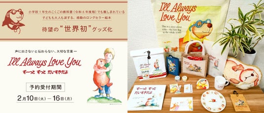 年間2,000万人が利用する絵本情報サイトを運営する株式会社絵本ナビ(本社東京都港区/代表取締役社長CEO 金柿秀幸、以下絵本ナビ)は、ロングセラー絵本『ずーっと ずっと だいすきだよ』(作・絵:ハンス・ウィルヘルム 訳:久山 太市 出版社:評論社)のグッズの予約販売を2月10日(火)より開始。本作品のグッズ化は、世界初となります。