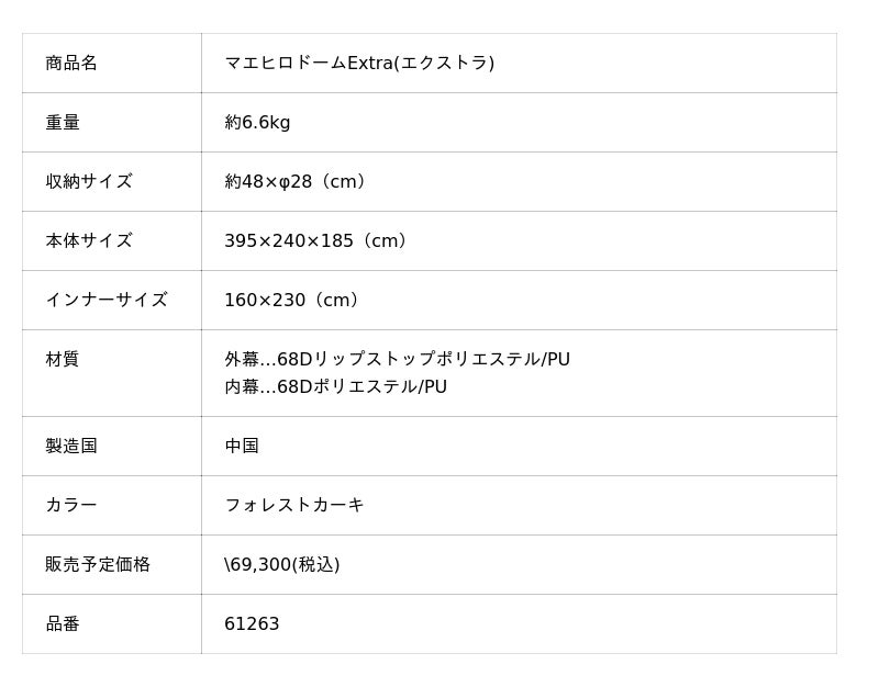 マエヒロドーム エクストラは、軽量コンパクト性に加え、テント内で立って動ける天井高と、ゆとりある前室空間を重視した設計です。そのため、耐風性を最優先としたテントではなく、強風時や天候が急変する恐れのある環境での使用は想定していません。