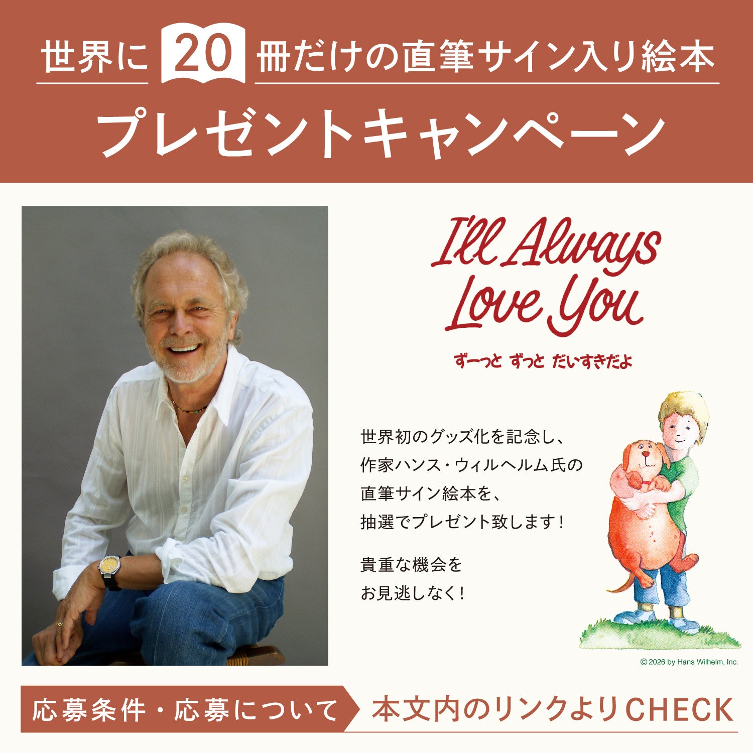 作者ハンス・ウィルヘルム氏の直筆サイン本を抽選で20名様にプレゼントするキャンペーンも開催されています。絵本ナビで絵本を購入した方も応募が可能です。