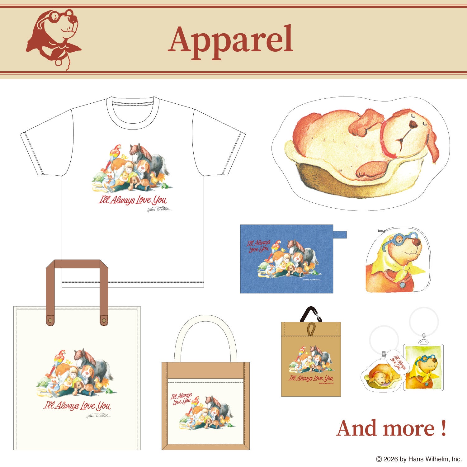 1988年に刊行されて以来、世代を渡って読み継がれているロングセラー絵本『ずーっと ずっと だいすきだよ』(作・絵:ハンス・ウィルヘルム 訳:久山 太市 出版社:評論社)。絵本に登場する“ぼくとエルフィー”が全35種類のグッズになりました。グッズ化するのは世界で初めて。オンラインサイトでの取り扱いは絵本ナビのみです。