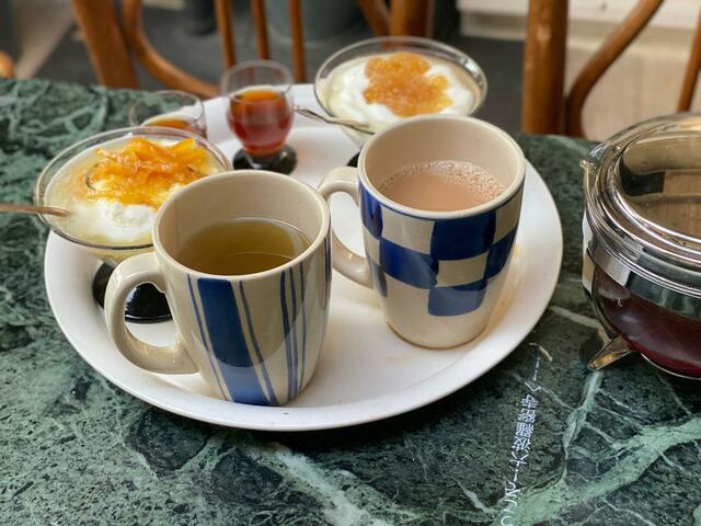 ミルクティ、プロテイン、今日の元気、ヨーグルト+林檎ジャム。