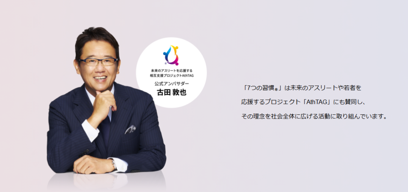 さらに、未来のアスリートや若者を応援するプロジェクト「AthTAG」にも賛同し、元プロ野球選手・監督・解説者として活躍する古田敦也氏を公式アンバサダーに迎えました。「7つの習慣(R)」ブランドの魅力と価値を、幅広い世代へ伝えるための起用となります。