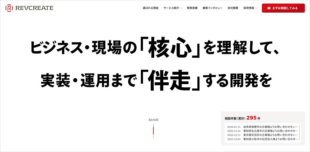 こうした課題を解消するため、レブクリエイトでは事業理解を起点とした設計と、継続的なコミュニケーションを重視し、開発後も含めて長期的に相談できるパートナーとして関わらせていただいています。開発だけではなく、お客様の事業のIT基盤整備や拡張について、社内の情報システム部のような立ち位置で伴走できる存在であること。それが、レブクリエイトの目指す姿です。