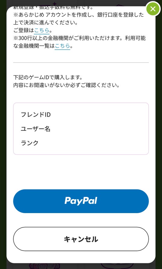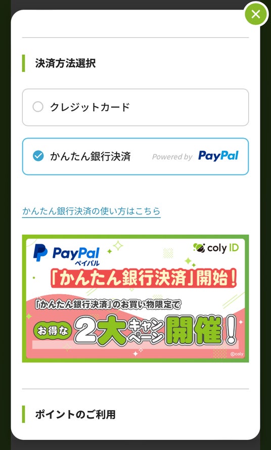 『coly ID』のPayPal「かんたん銀行決済」でのお支払い1000円以上