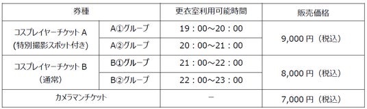 ※コスプレイヤーチケットには更衣場所とクロークサービスが含まれます。