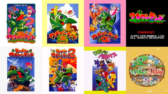 1989年にナムコ(現株式会社バンダイナムコエンターテインメント)より発売された家庭用アクションゲームシリーズ。主人公のワギャンは悪の天才科学者ドクターデビルを倒し、故郷の島の平和を取り戻すために冒険をします。声で敵をしびれさせて先へ進む横スクロールアクションと、しりとりや神経衰弱といった知恵くらべをモチーフにしたボス戦など、ユニークなゲームシステムとともにキャラクターも大人気のゲームシリーズです。