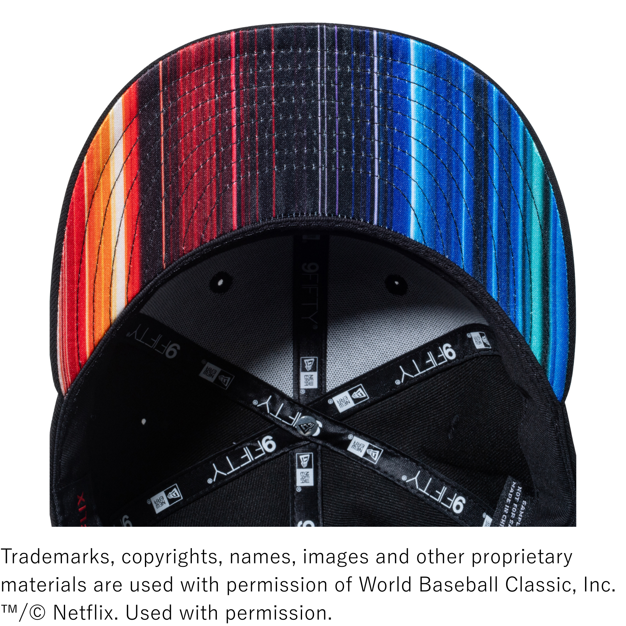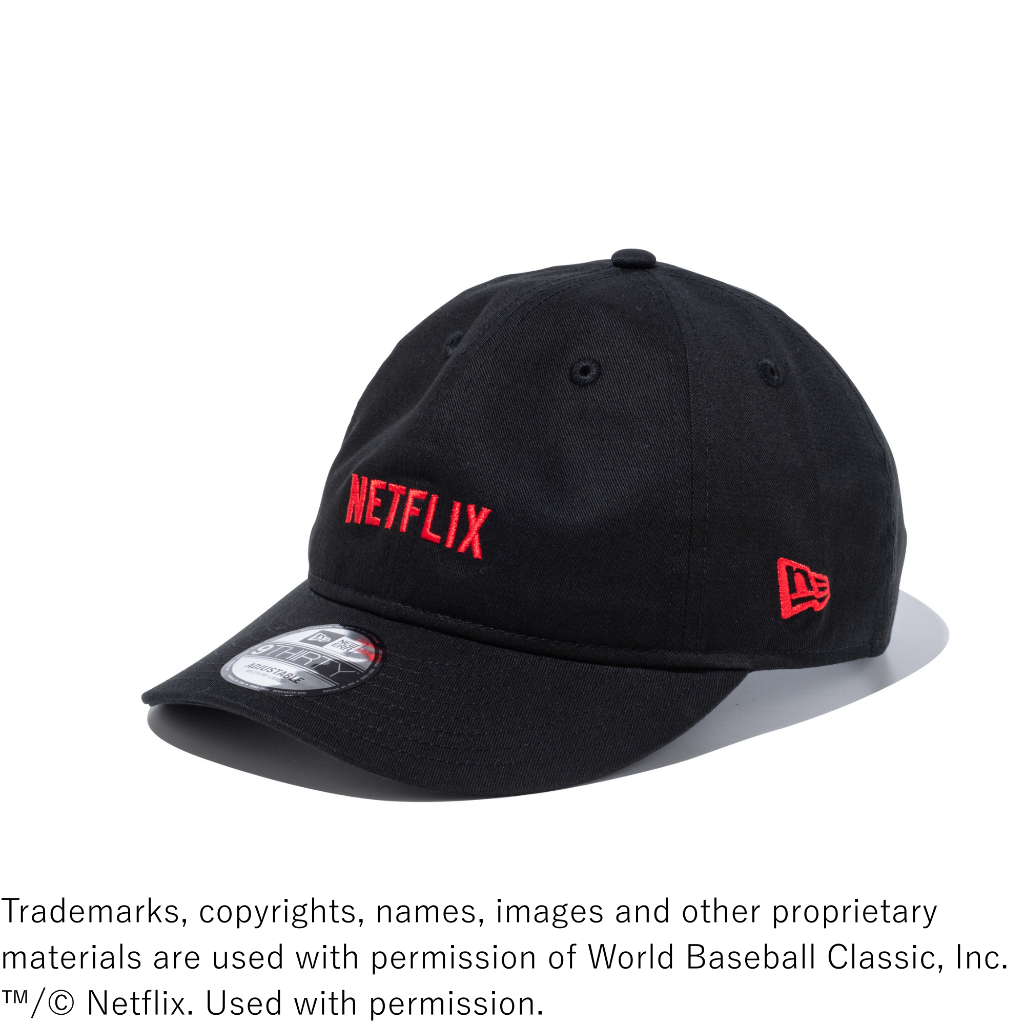 各アイテムには、Netflixおよび2026 World Baseball Classic(TM)のロゴを配し、さらにNetflixを象徴するストリームラインをデザインのアクセントとして取り入れています。立体的なフォルムとアジャスタブル仕様による安定したフィット感が特長の[9FIFTY(TM)(ナインフィフティー)]にはアンダーバイザー(つば裏)にストリームラインを配し、芯のない構造で柔らかな被り心地が特長の[9THIRTY(TM)(ナインサーティ)]にはリアのアジャスター部分に同デザインをあしらっています。