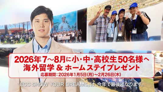 総合教育・生涯学習機関の株式会社ECC(本社:大阪市北区、代表取締役社長:花房雅博)は、ECCブランドアンバサダーを務める大谷翔平選手との共同プロジェクト『ECC SHOW YOUR DREAMS 2026』を実施しています。