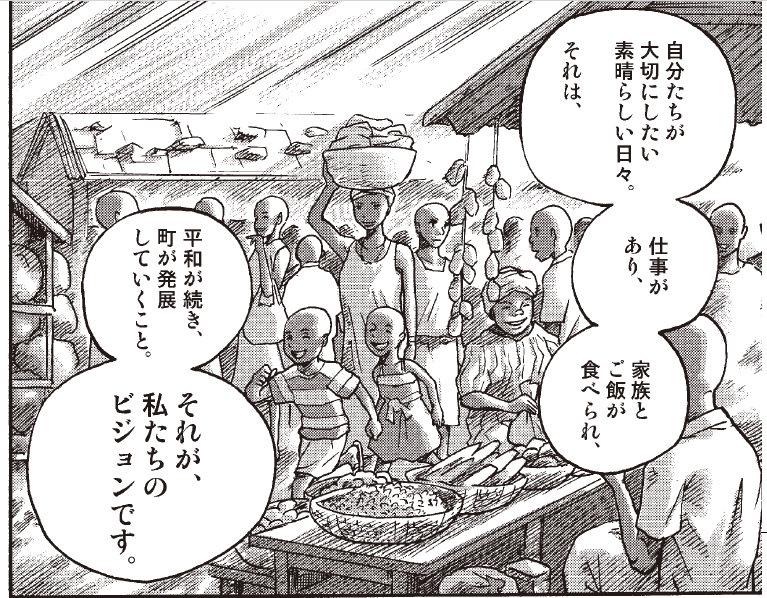 ・「平和に暮らしたい」という人類共通の願い。どのような過酷な体験をしても、平和な世界のビジョンを描き、人はいつからでも変わることができる。人間の強さを支援の現場では日々目にしている。