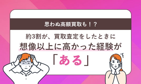 ということで今回は、売りたい商品の買取最高値がすぐわかる『最高値ナビ』と共同で、事前調査で「何かを買い取ってもらうために買取査定をしたことがある」と回答した全国の男女300名を対象に「思った以上に高額で売却できた経験」に関するアンケートを行いました。