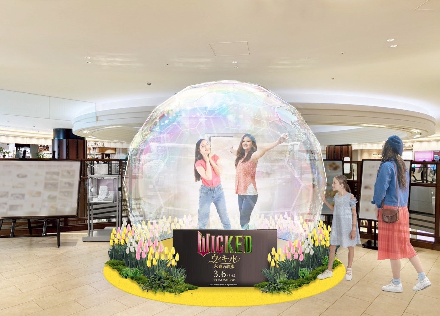 昨年、多くの来場者から好評を博した映画『ウィキッド ふたりの魔女』とのコラボレーションに続き、今年は続編となる『ウィキッド 永遠の約束』(3月6日公開)とのコラボレーションが実現。15,000本を超えるアーティフィシャルフラワーで構成されるフラワードームや映画の世界をモチーフにしたチューリップ畑の大階段装飾に加え、来場者をオズの物語へと導く「黄色いレンガの道」など新たなスポットが登場。昨年以上に深く、魔法の世界へ没入できる空間が広がります。さらに今年は館内にも映画の世界をモチーフにしたフォトスポットを設置します。