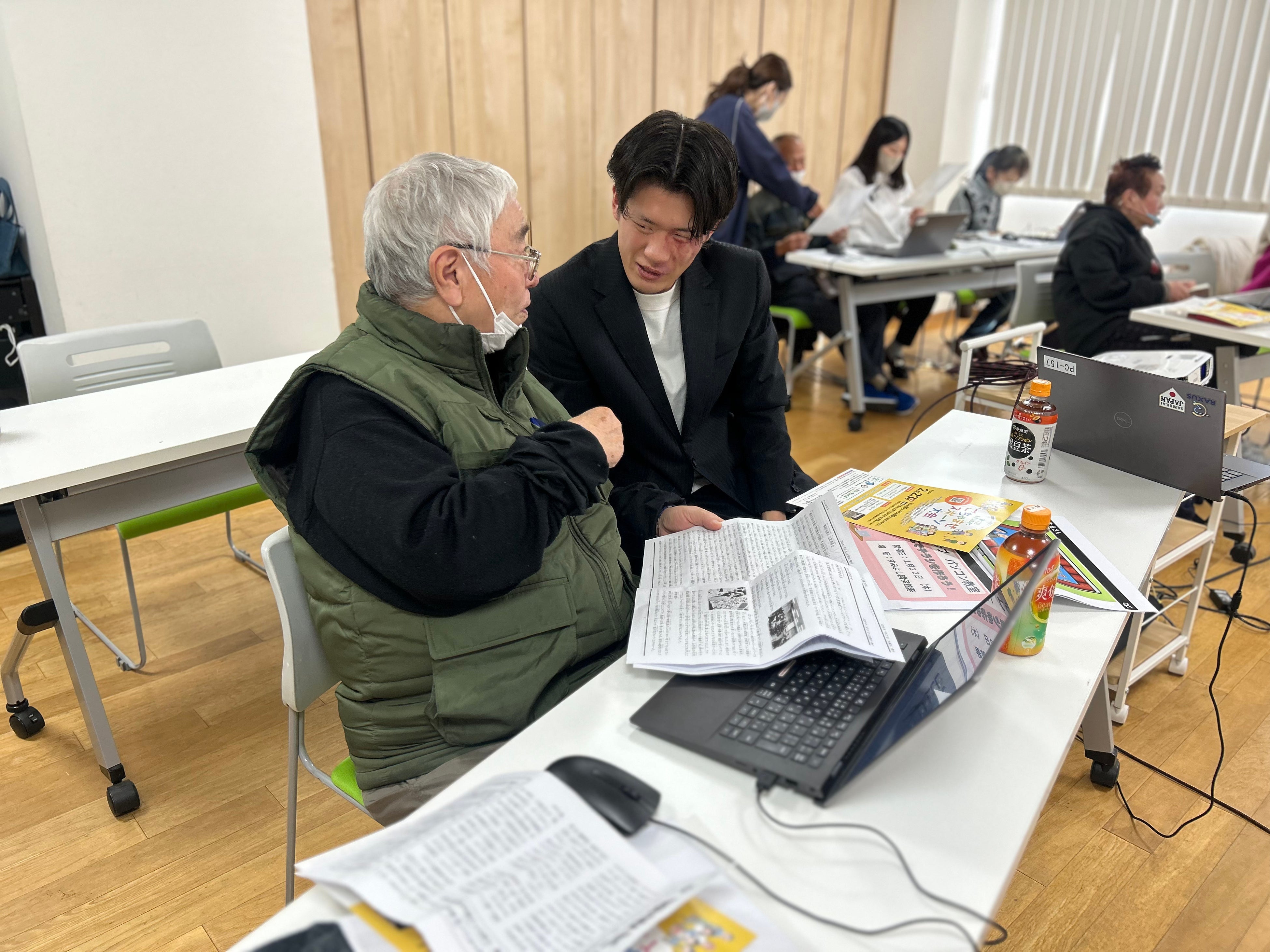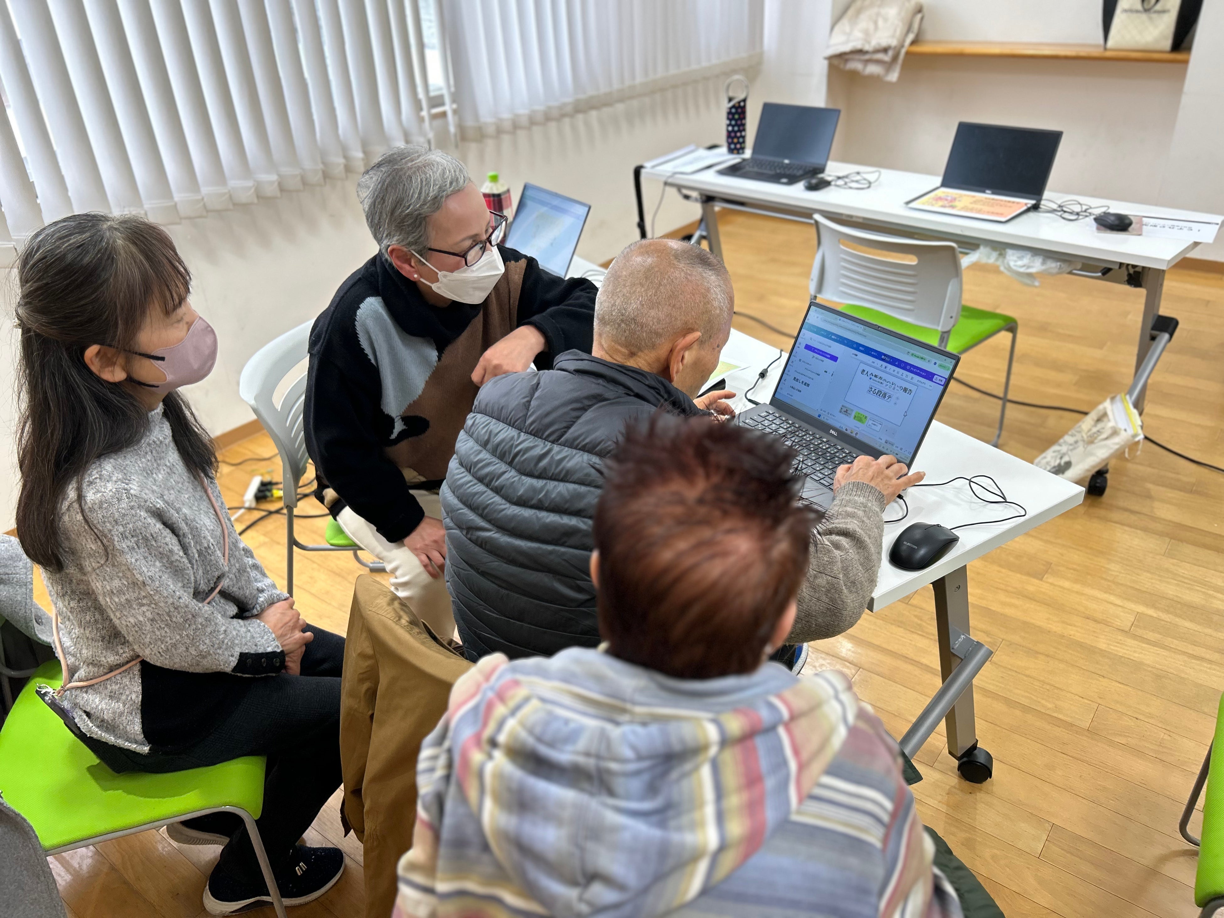 今回は、老人会役員を務める皆さまが、地域のイベント時に使用するチラシのデザインについて講座を行いました。3回にわたり実施し、最終日はCanvaを使用してオリジナルのチラシを制作。それぞれの個性あふれるデザインが完成しました。