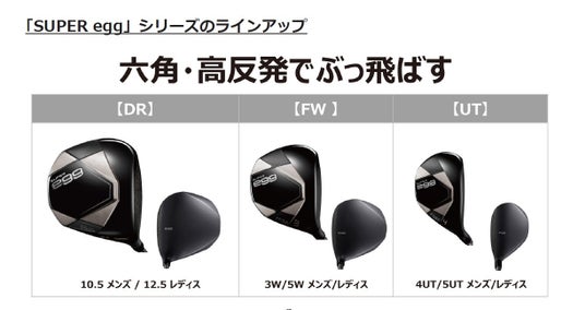 (株)プロギアは、SLEルール適合外の高反発設計で、飛距離が落ちてきたゴルファーに飛ばす楽しみを提供し続ける「SUPER egg(スーパー・エッグ)」シリーズから、高反発フェースと六角形状の高剛性ボディで飛びとやさしさを徹底追及した「SUPER eggフェアウェイウッド」と「SUPER eggユーティリティ」を3月13日から発売します。